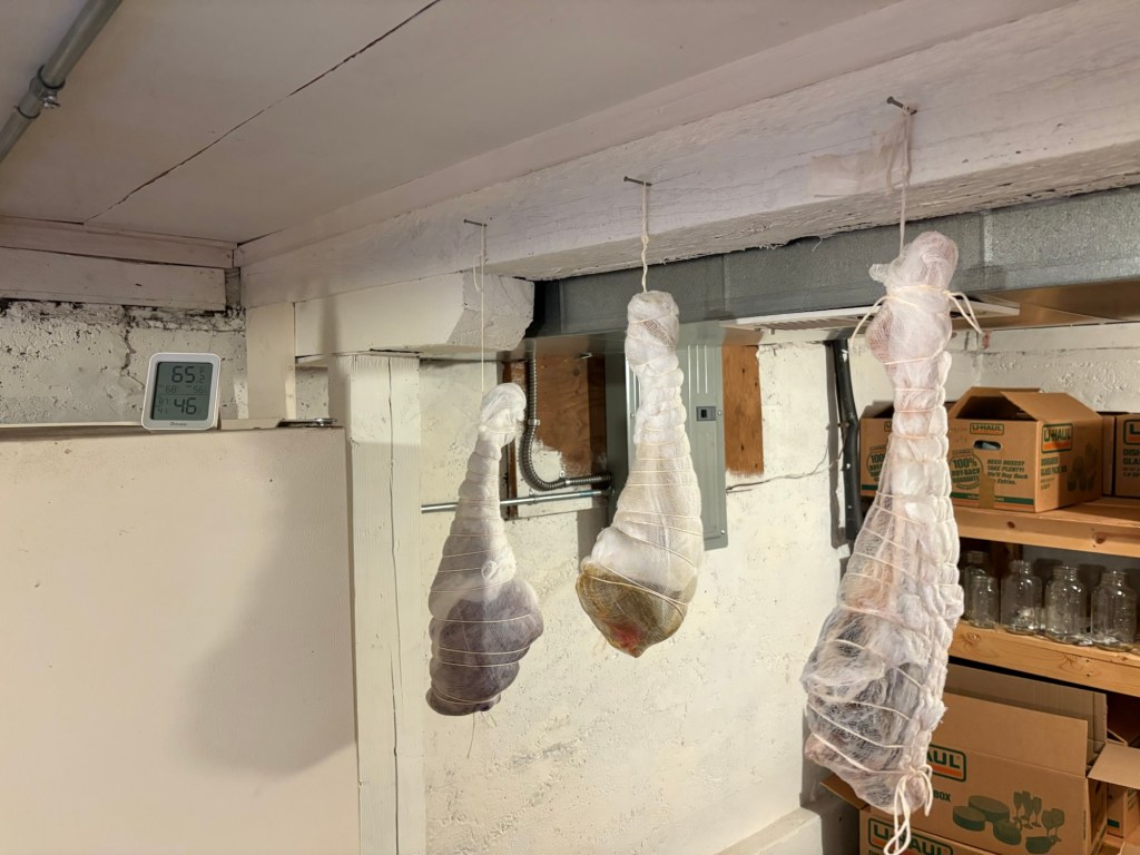 I want to let these legs cure all the way until September, maybe cut into them on Michaelmas. We will see how it goes.