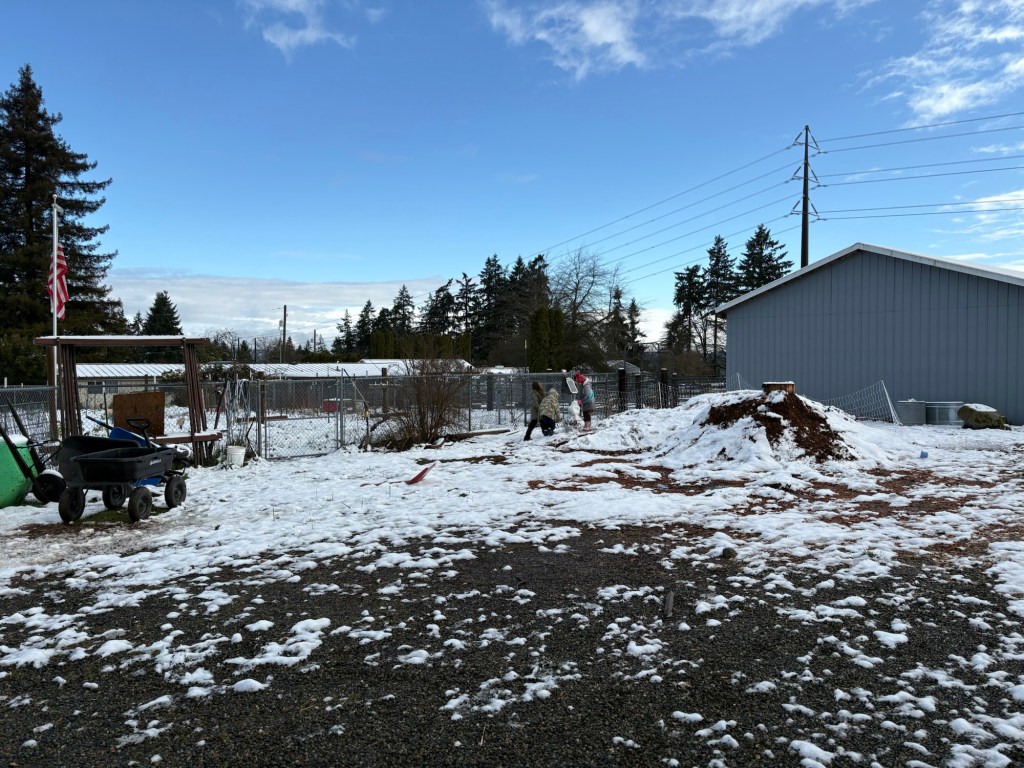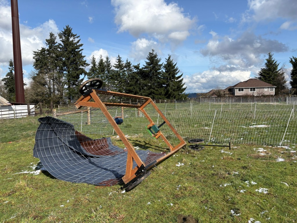 By afternoon on Saturday the snow was almost completely gone, but we had to flip the shade mobile back over. The wind had been stiff enough to flip it.