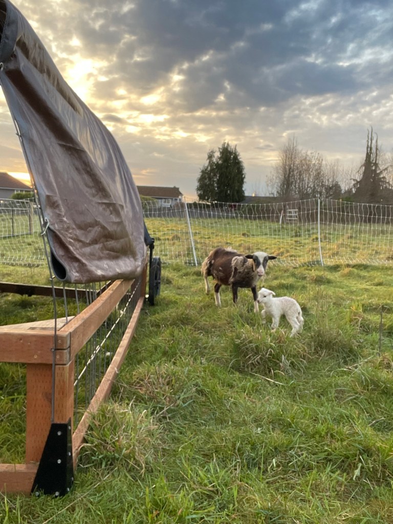 No, no one was tracking she was pregnant at all, though I did see the rams mounting her on Thanksgiving last year. Since then she has been getting taller, but she didn’t seem to be getting wider, or having much teat development. The other ewes lambed and went on with their lives, and ‘Tildy didn’t, so we just assumed she was too young to take.