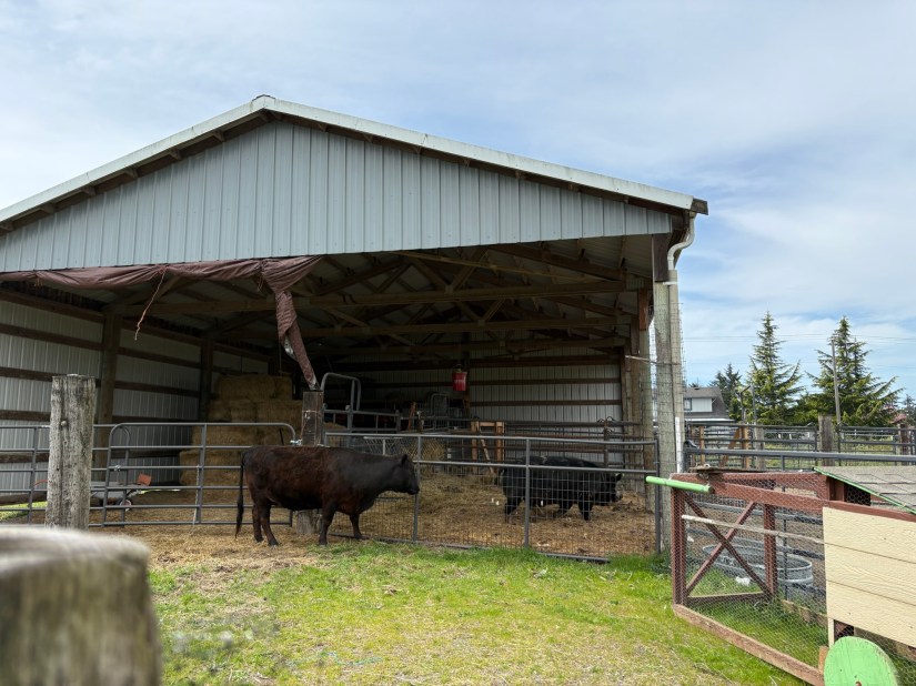 Iris was very offended to find some thing in her barn, and stayed in the shade of the barn, right next to the gate whenever she was ruminating all afternoon.