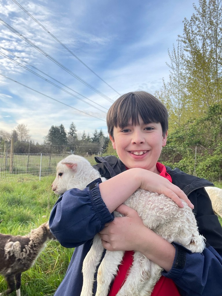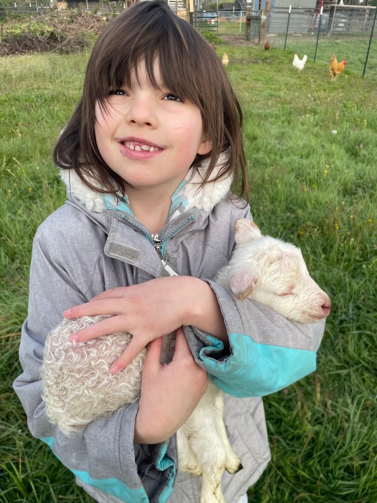 No, that’s not a picture of one of the older lambs. This is a new lamb! Matilda had a baby on April 20!