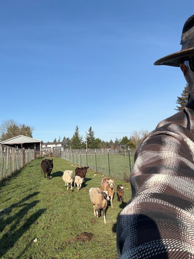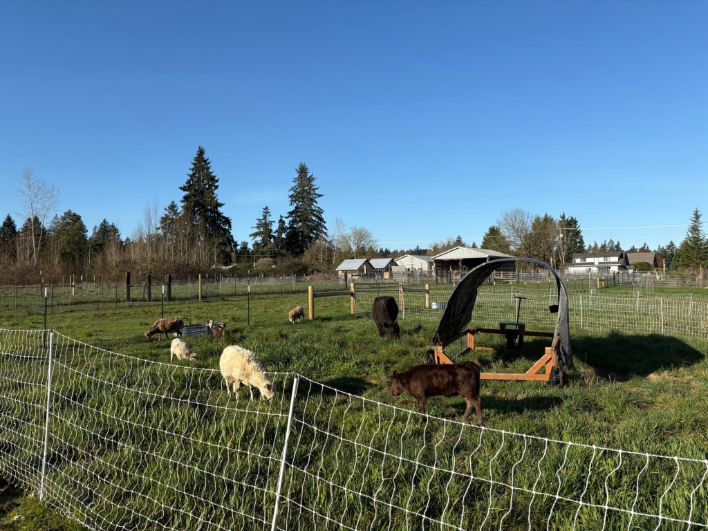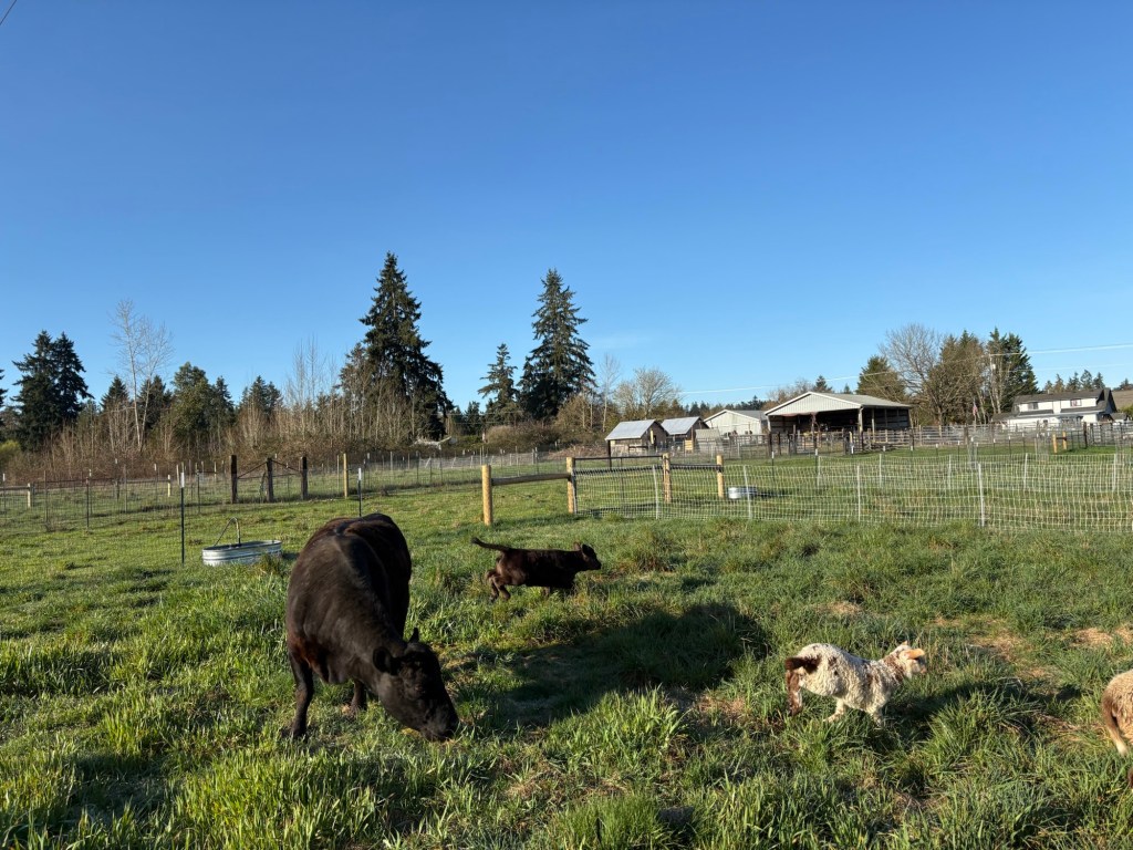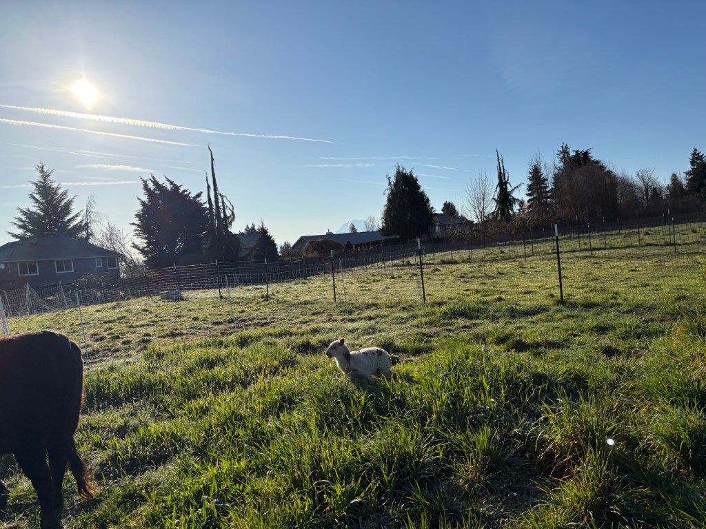 Moving the sheep is as much a matter of voice as it is of sight. When I show up in the morning and call out “Here, Sheepie-sheep! Here Moo Cows!” (What?! I have kids, it’s just how we talk to the critters around here.) They prick up their ears and move to the sound of my voice, because they know that it is the sound of tasty garden snacks, alfalfa pellets and fresh green paddocks.