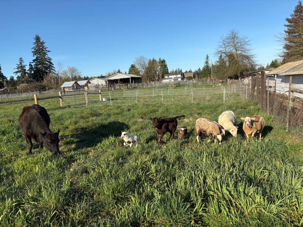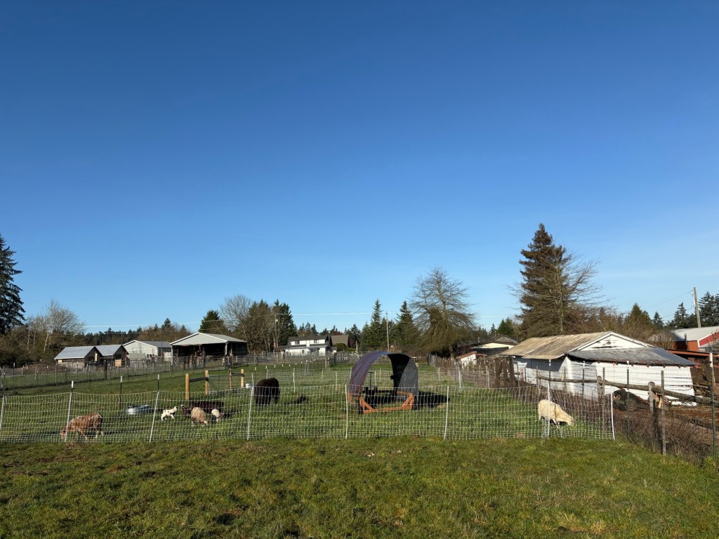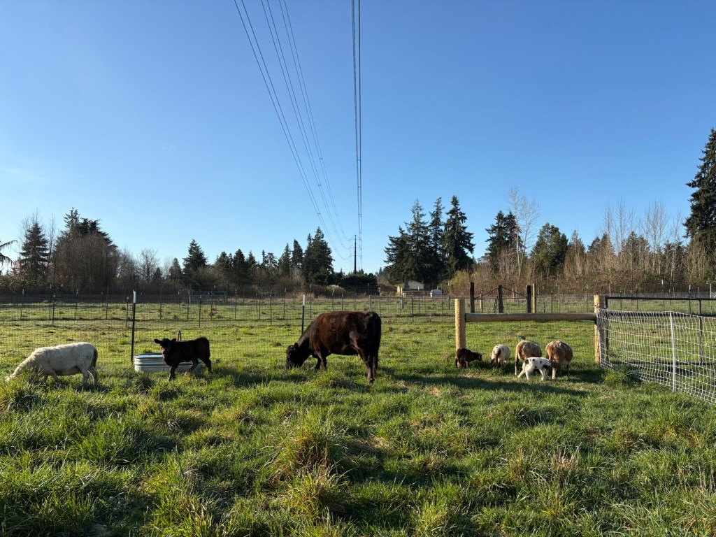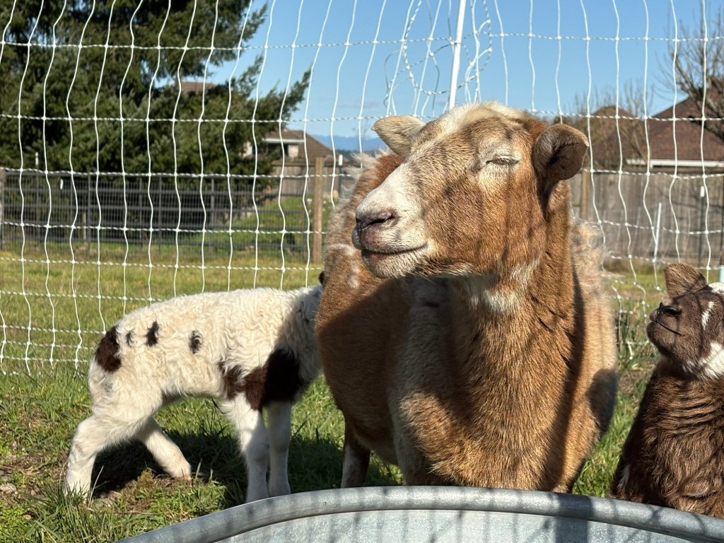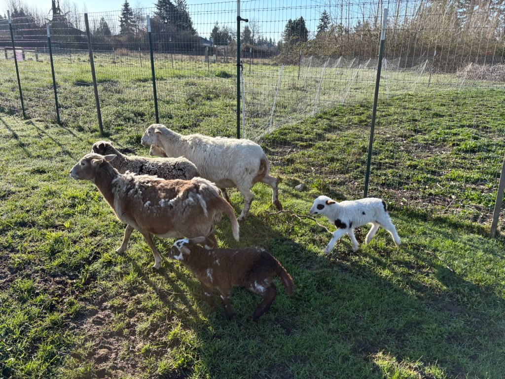 Moving the sheep is as much a matter of voice as it is of sight. When I show up in the morning and call out “Here, Sheepie-sheep! Here Moo Cows!” (What?! I have kids, it’s just how we talk to the critters around here.) They prick up their ears and move to the sound of my voice, because they know that it is the sound of tasty garden snacks, alfalfa pellets and fresh green paddocks.