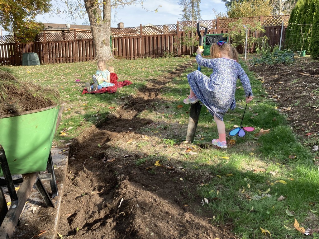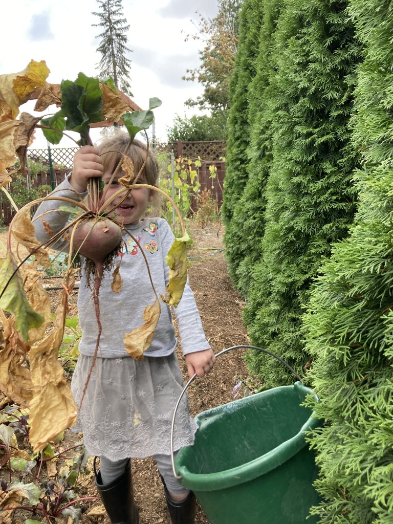 Saturday was a busy garden day. Daddy and Winnie and Seppi got out there early, prepping last year’s legume row to be ready for winter wheat. Of course, we do not hold with muzzling the ox that treadeth out the grain. In other words, snacks for everyone in the garden. This is a radish. We…