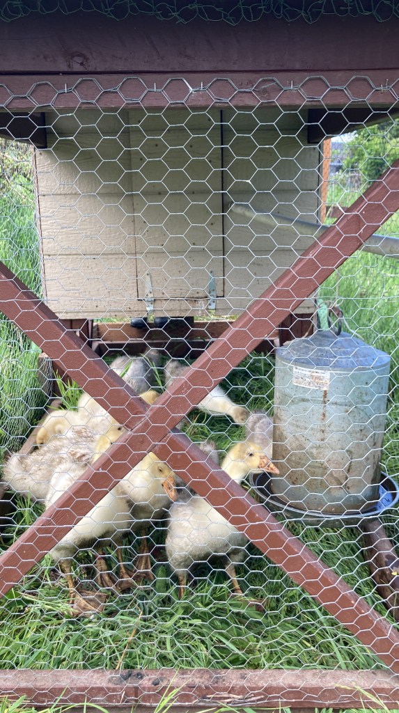 Teh old chicken tractor came in handy to move them around the old orchard for a while, but they quickly outgrew it, and we had to let them out, first into the orchard only…